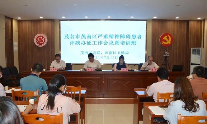会议首先由茂南区残疾人联合会领导对《茂名市严重精神障碍患者评残办证实施方案》进行了详细的解读。接着由茂南区卫生健康局领导、区残疾人联合会领导分别对评残办证工作作部署及建议性发言。