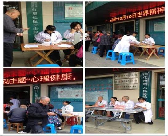 鹤城区红星社区卫生服务中心联合怀化市第四人民医院的工作人员开展了主题为“心理健康,社会和谐”的宣传活动,吸引了不少的市民踊跃参与。