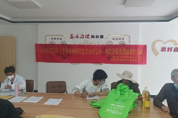为贯彻落实国家基本公共卫生服务项目,加强对花山区严重精神障碍患者的管理,进一步做好花山区内精神障碍患者管护工作,科学规范严重精神病人排查、诊断与危险性评估工作,全面掌握花山区精神障碍患者的数量和生活等情况。花山区邀请第四人民医院和中爱医院专科医生,在花山区开展为期两周的严重精神障碍患者进行评估定级、康复指导。